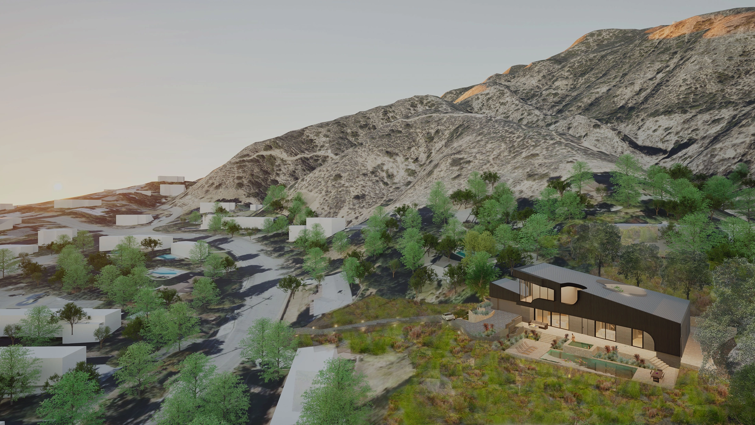 Studio Fang specializes in extreme fire resiliency for Southern California’s WUI zones. Following the 2025 Eaton Fire, the studio pioneered "smoke-tight" design, utilizing 0.6 ACH50 airtightness to protect indoor air quality from toxic particulates. Expertise includes Shou Sugi Ban (charred timber) for Class-A rated, carbon-sequestering skins and resource resilience, such as engineering pools into 20,000-gallon emergency water reserves. We combine Passive House science with defensive landscape strategies to build back right.